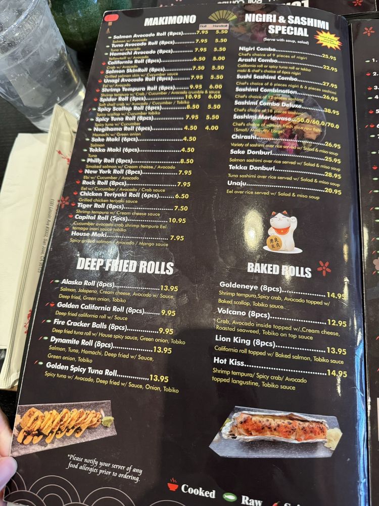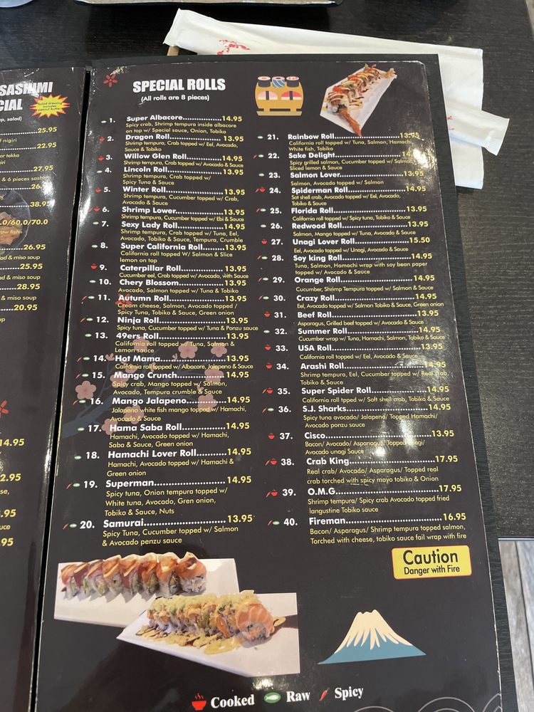 real crab /avocado/asparagus/topped real carb torched with spicy mayo tobiko onion