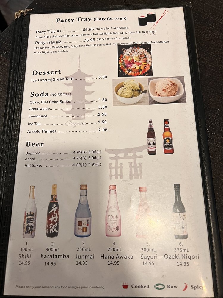 (Serve for - people)Dragon Roll, Rainbow Roll, Shrimp Tempura Roll,California Roll, Spicy Tuna Roll, pcs Nigiri