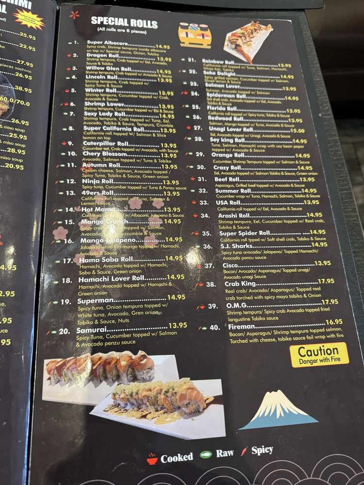 spicy tuna avocado/ jalapeno/topped hamachi/avocado unagi sauce